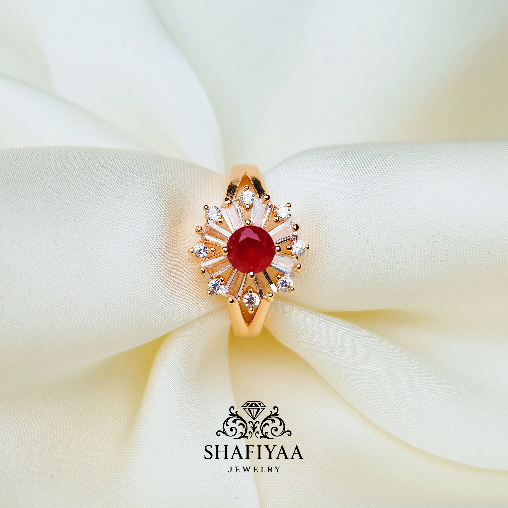 Ruby Radiance Sunburst Ring
